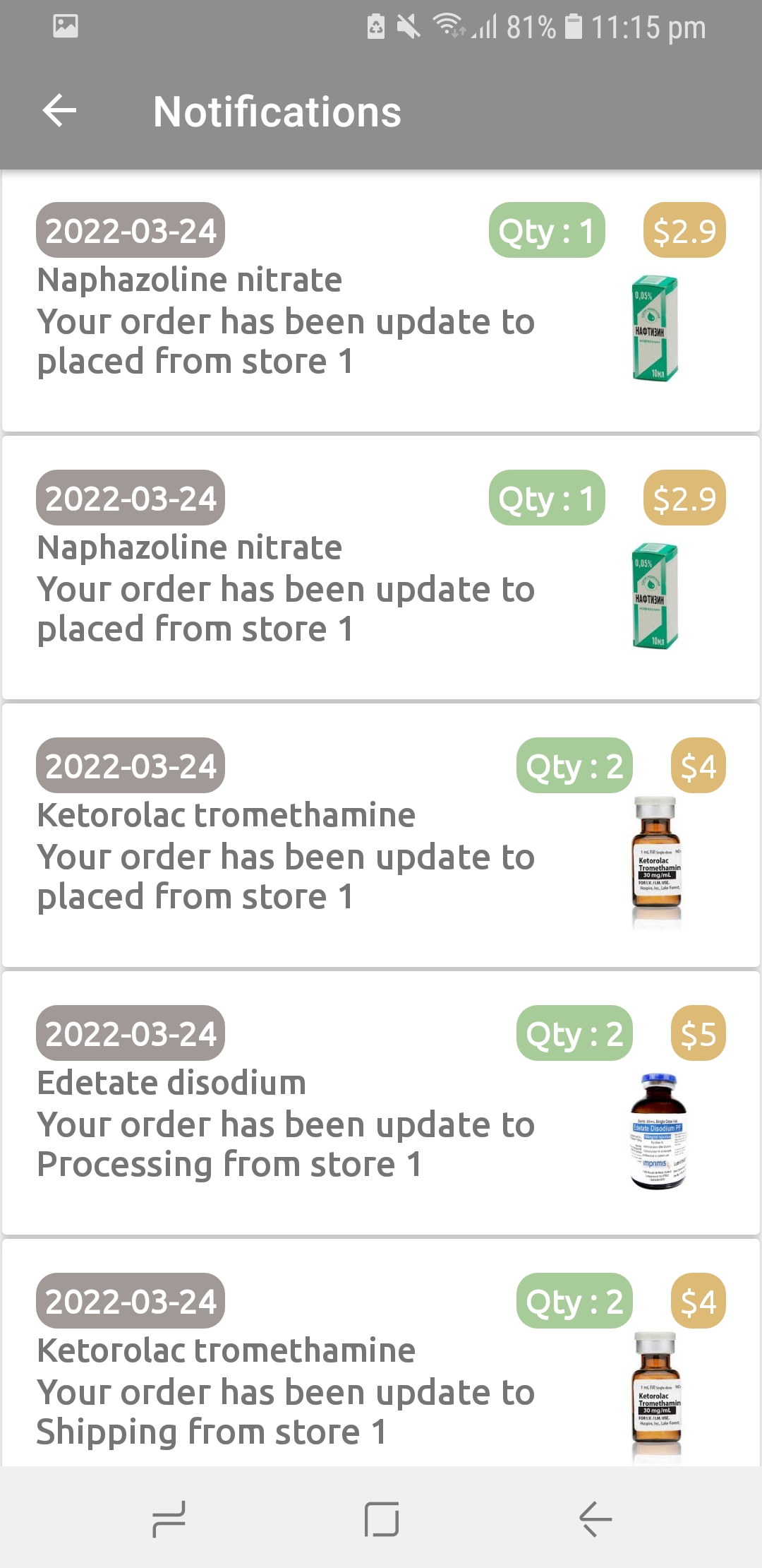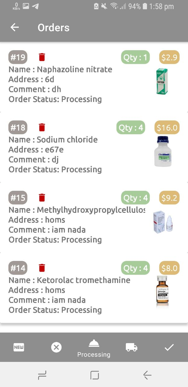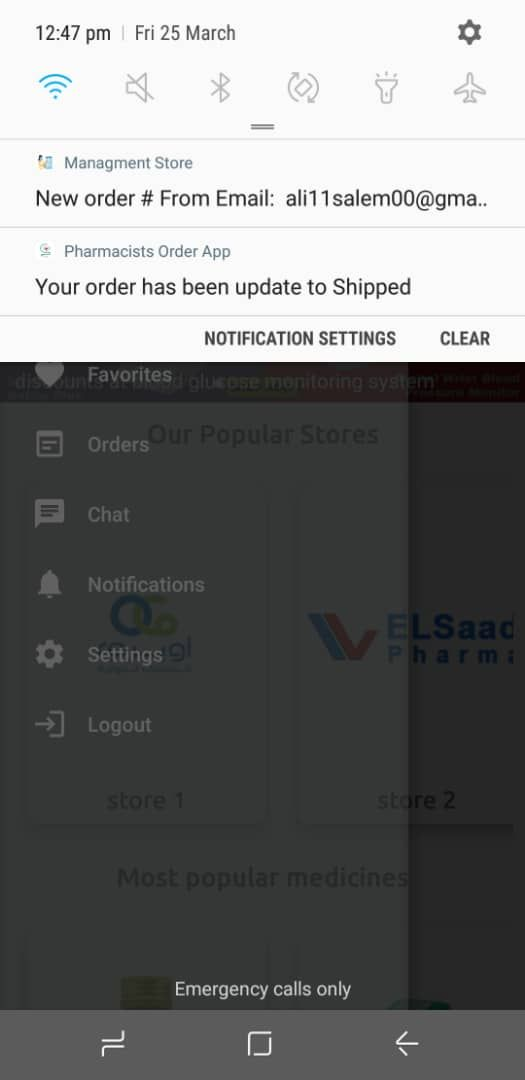 This is a Pharamcists-Order-App-and-Managment-Medicine-Stores-App which has been implemented using [ Java ,RXJava MultiThreading ,Retrofit ,Room ,SharedPreferences ,Gson ,Laravel ,Voyager ,MySql ,Firebase ,Firestore ,FCM Push Notifications Navigation Drawer ,Picasso ]