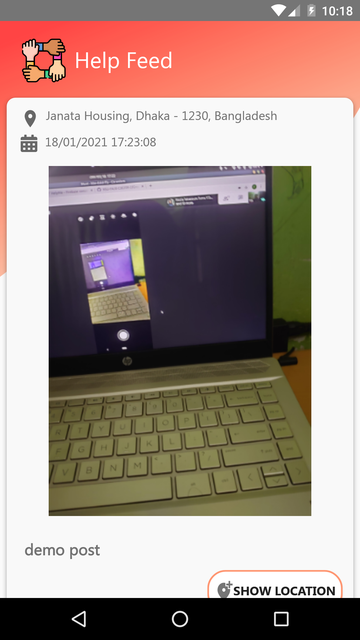 - App Feed:The app itself has a feed of it’s own, all emergency help posts will be listed here. The feed is visible to all app users and can be filtered based on location & time.