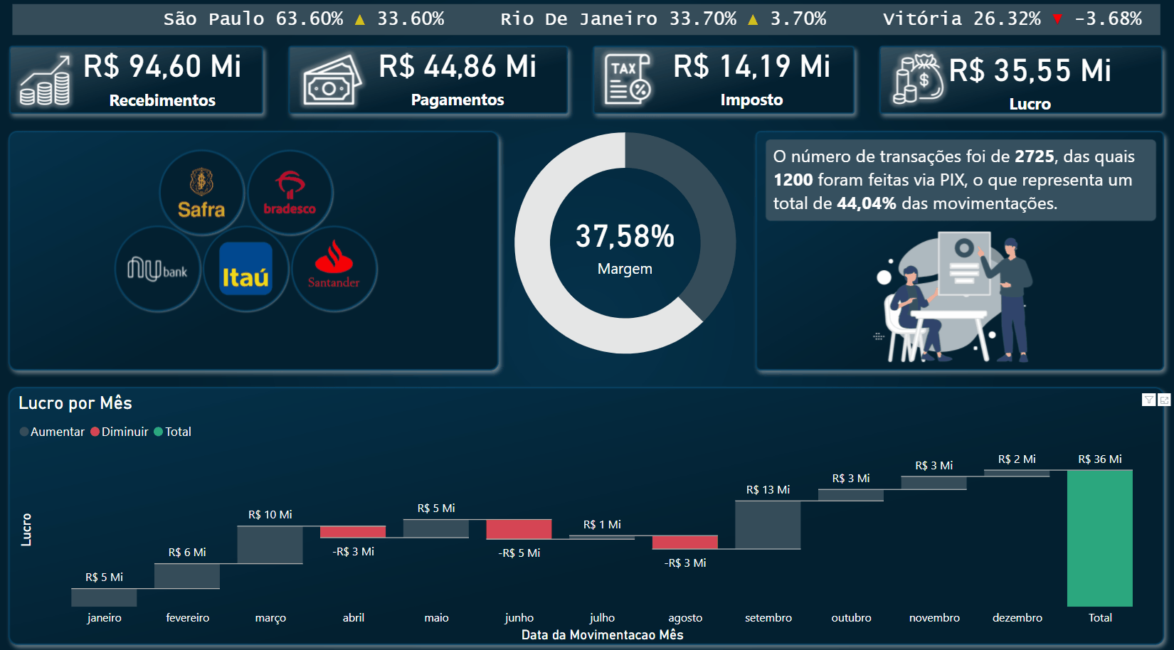 Dashboards elaborados com foco em estudos na ferramenta Power BI, visando construir um portfólio com cenários reais do dia a dia: