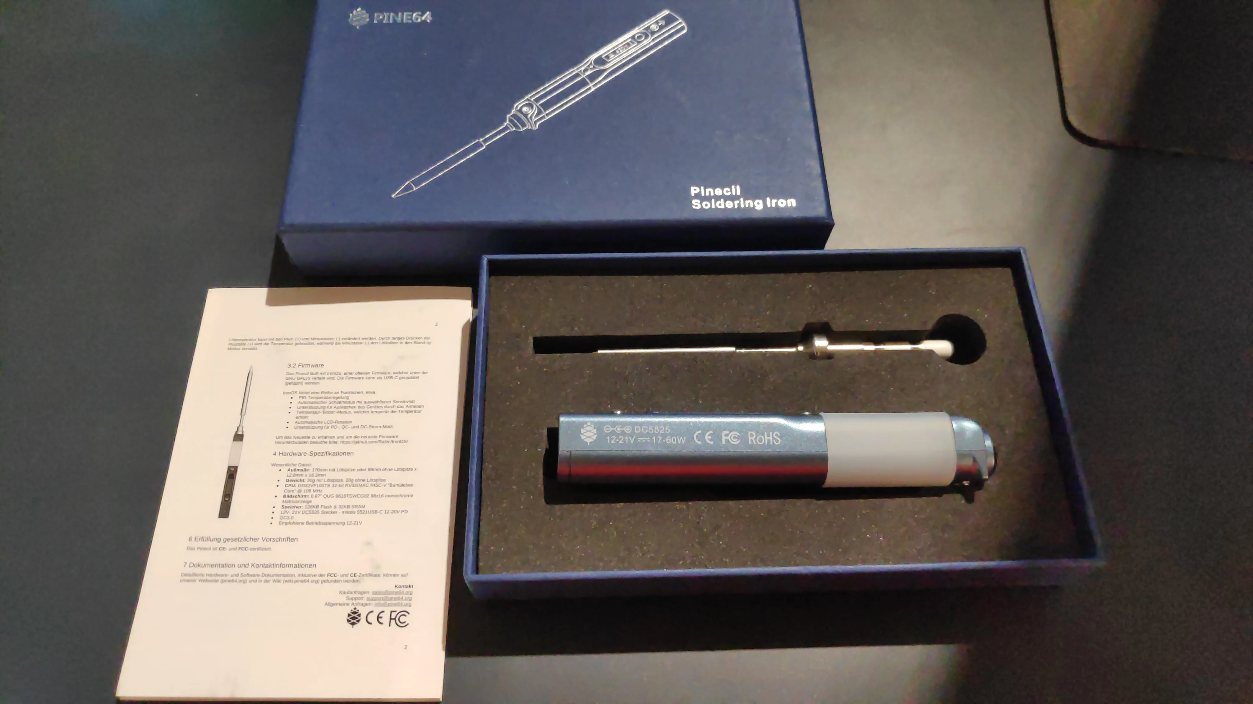 @AndreG-P I think it's funny that they took the PDF from the Pinecil Wiki page and printed it out to go with the fake copy of pinecil. and to add, that fake copy can not* do bluetooth BLE and has a completely different MCU (main computer chip) than the V2 Pinecil. it does not have any of the capabilities of Pinecil V2, it can not do PD3.1 usb-C chargers. |