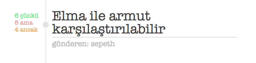 Kullanıcılar önermeleriyle birlikte tartışılabilecek, desteklenebilecek, ispatlanabilecek ya da çürütülebilecek bir argüman öne sürerler ve bunu argümanına ÇÜNKÜ, AMA, ANCAK ve benzeri önerilerle haklılığını/doğruluğunu savunur.