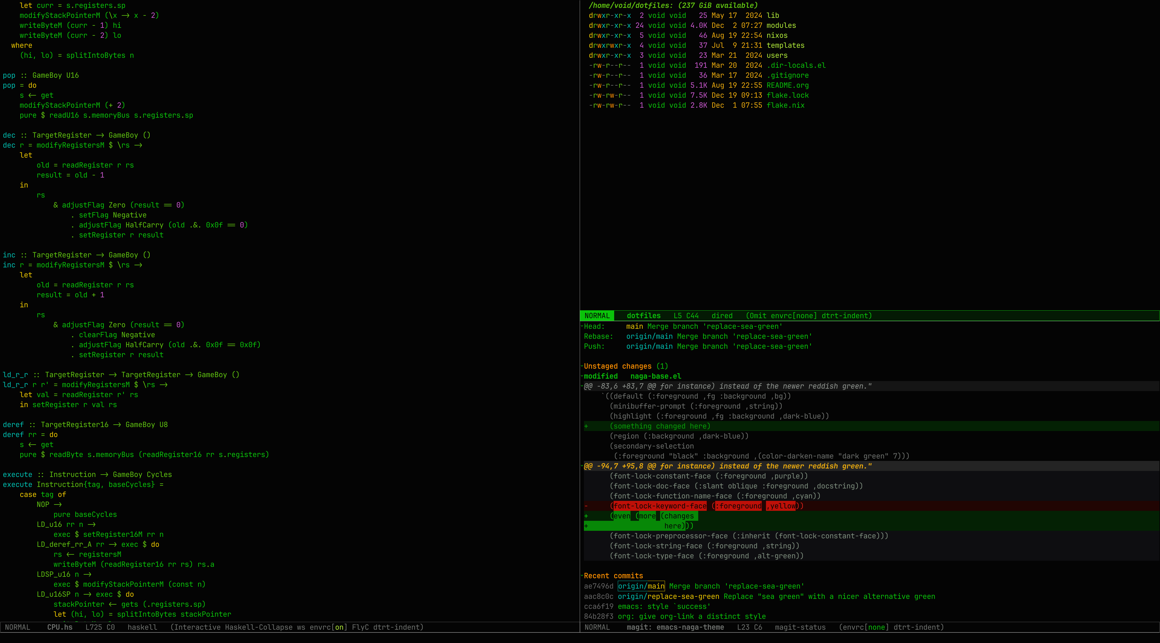 (load-theme 'naga t)There are a couple of styling options available. It's best to check out
