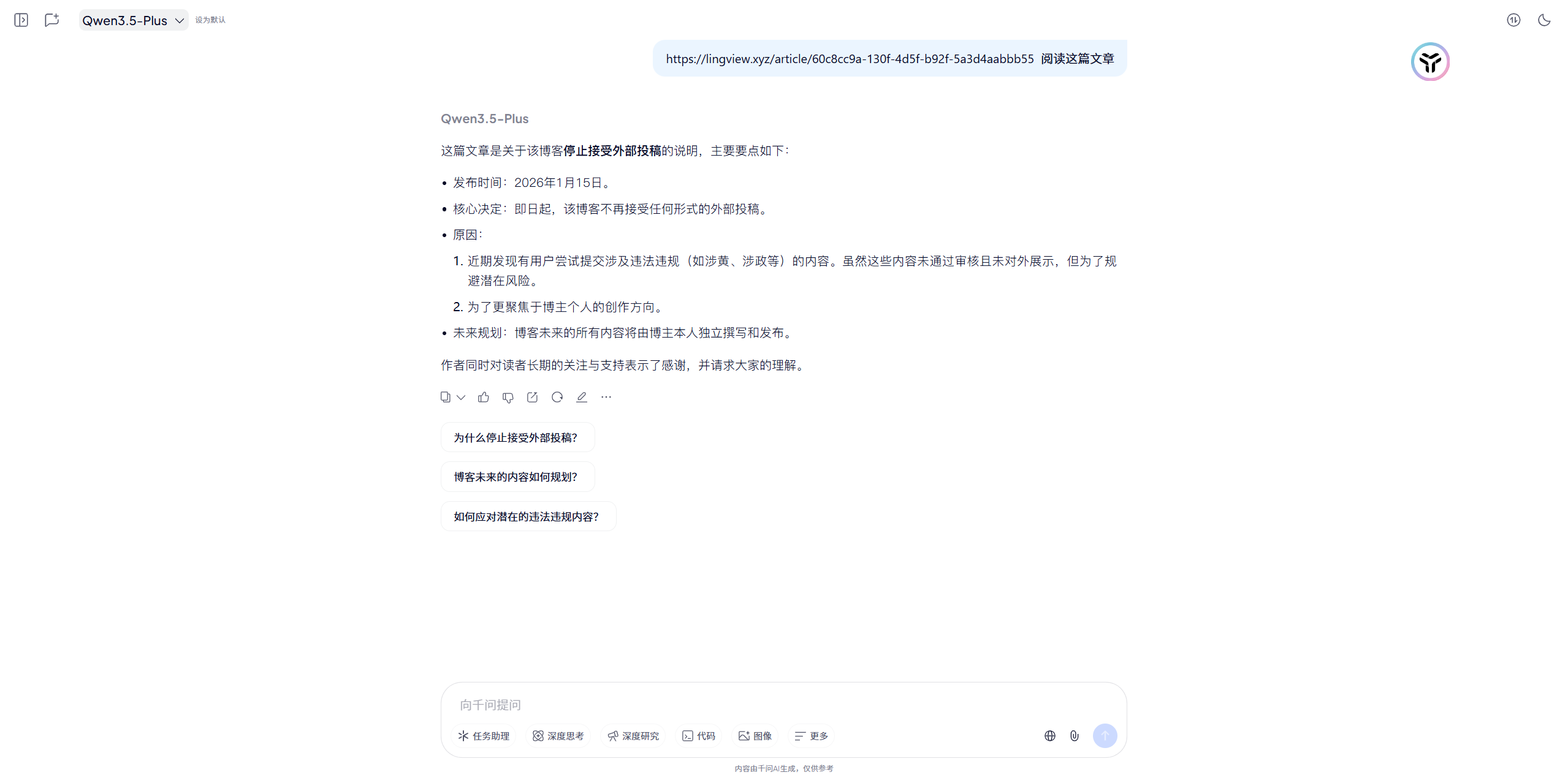 文章内容可以被大部分网页AI直接读取(密码文章无法读取)