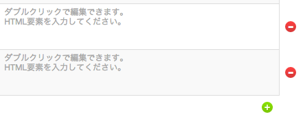 右下のプラスアイコンでアイテム項目を追加し、ダブルクリックで編集。 こちらにHTMLを入力していきます。