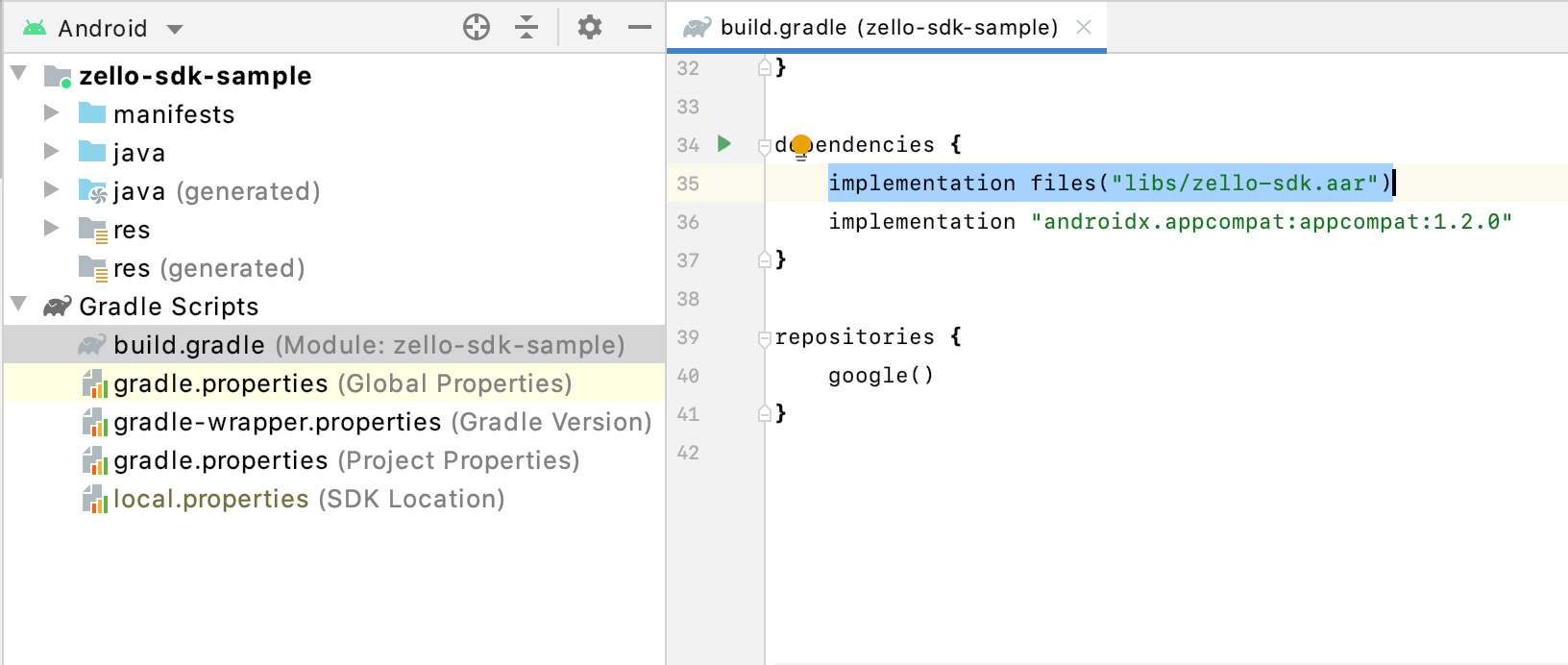 artifacts.add("default", file("libs/zello-sdk.aar"))